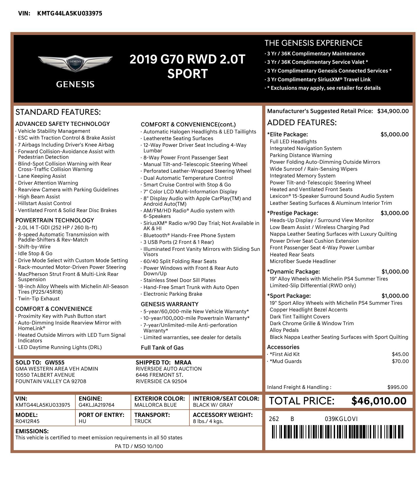 - Includes 19-inch sport alloy wheels, front P225/40R19 rear P255/35R19 summer tires, dark chrome grille, dark chrome window trim, dark tint taillight covers, copper headlight bezel accents, alloy pedals, and nappa leather seating with luxury quilting.